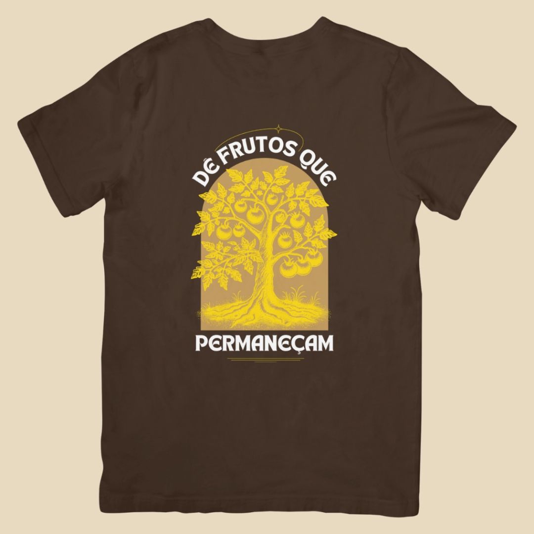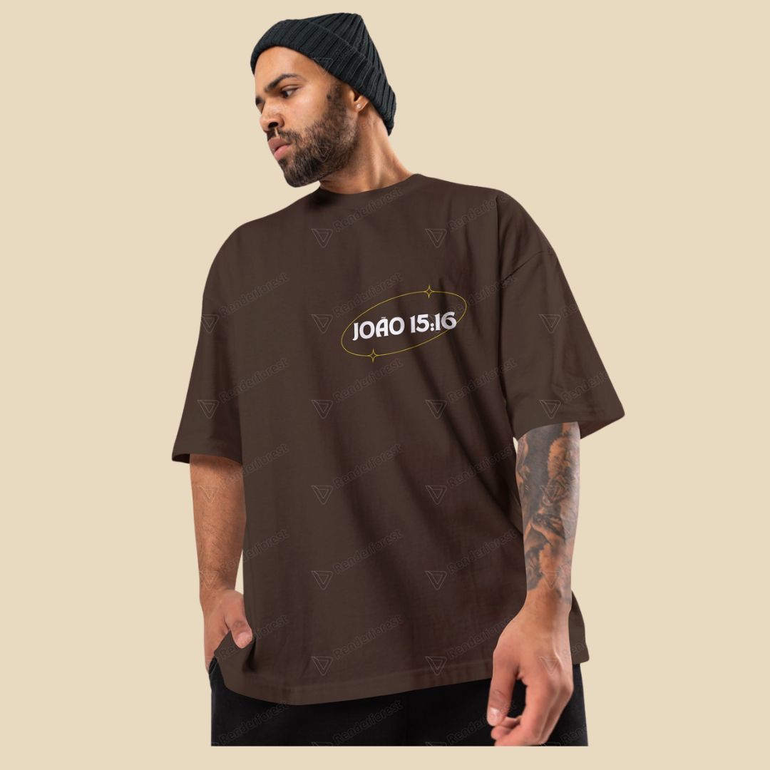 Com base em João 15:16, essa camiseta carrega o chamado de dar frutos que permaneçam. Modelagem oversized, arte cheia de vida e propósito duradouro.