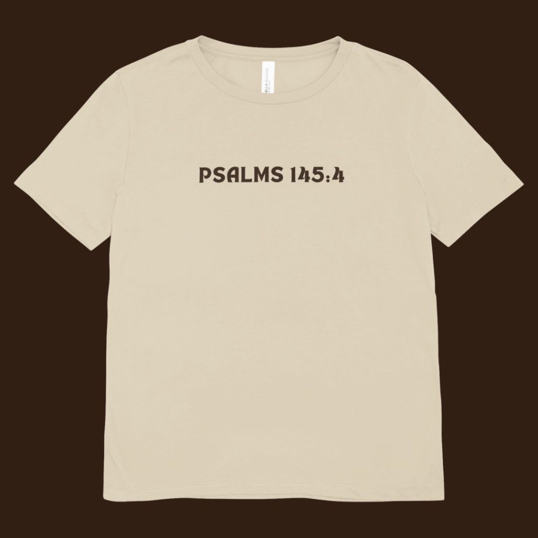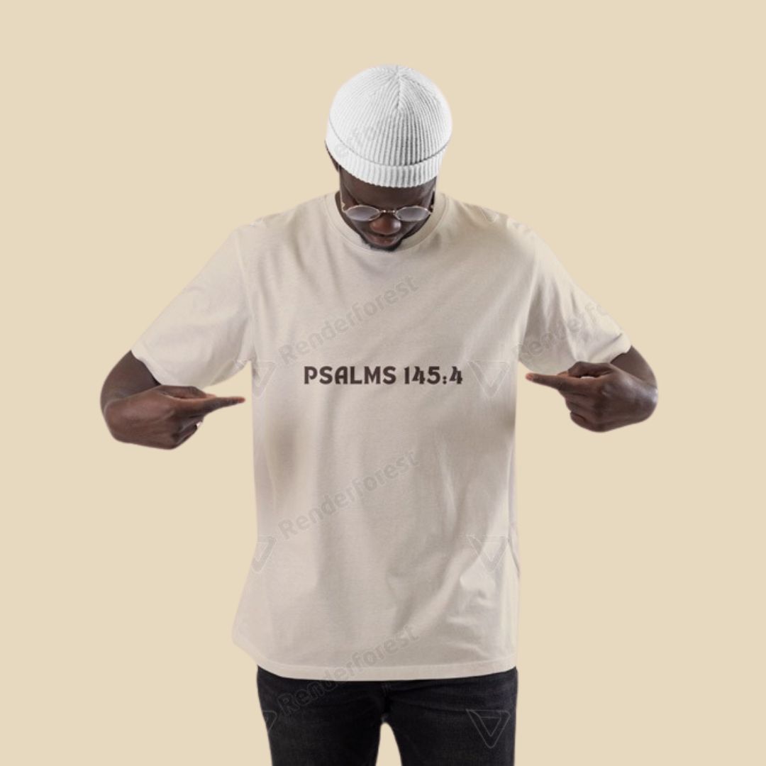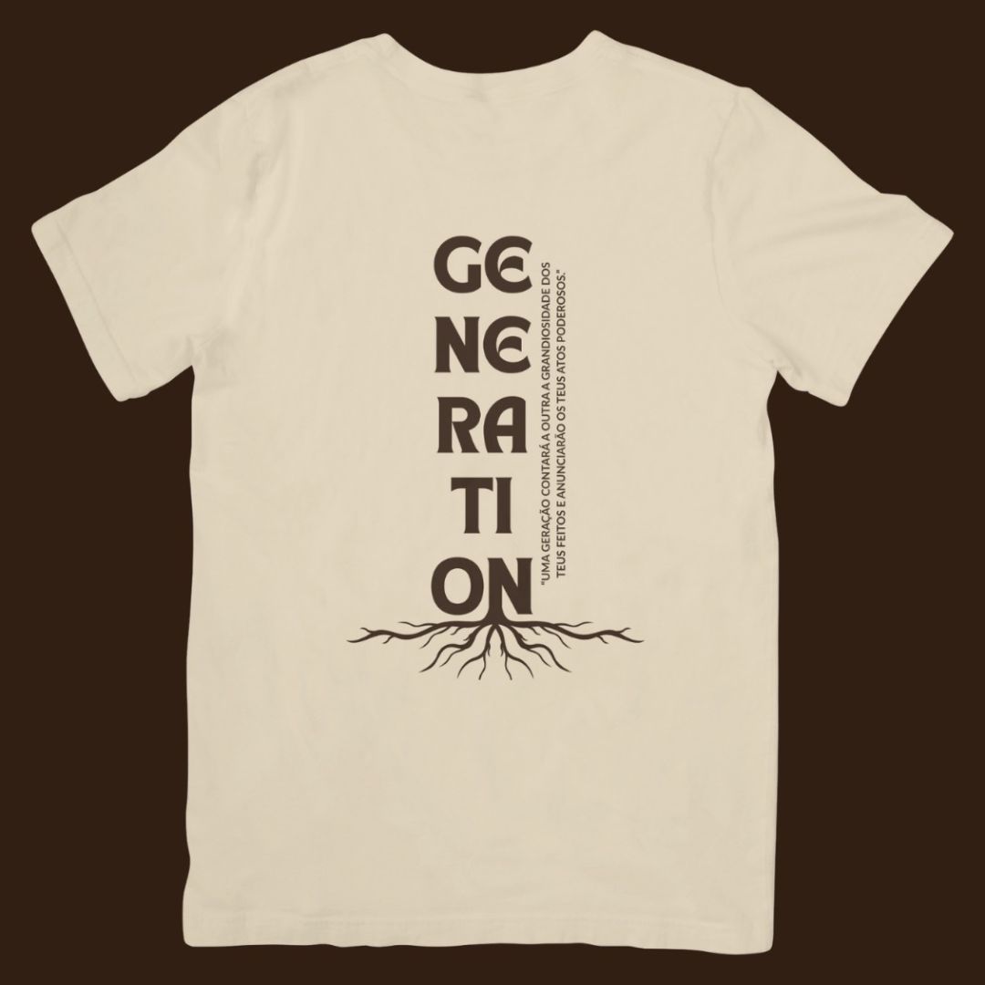 Com base em Salmos 145:4, essa camiseta carrega o chamado de transmitir a fé de geração em geração. Modelagem oversized, arte com raízes profundas e propósito eterno.